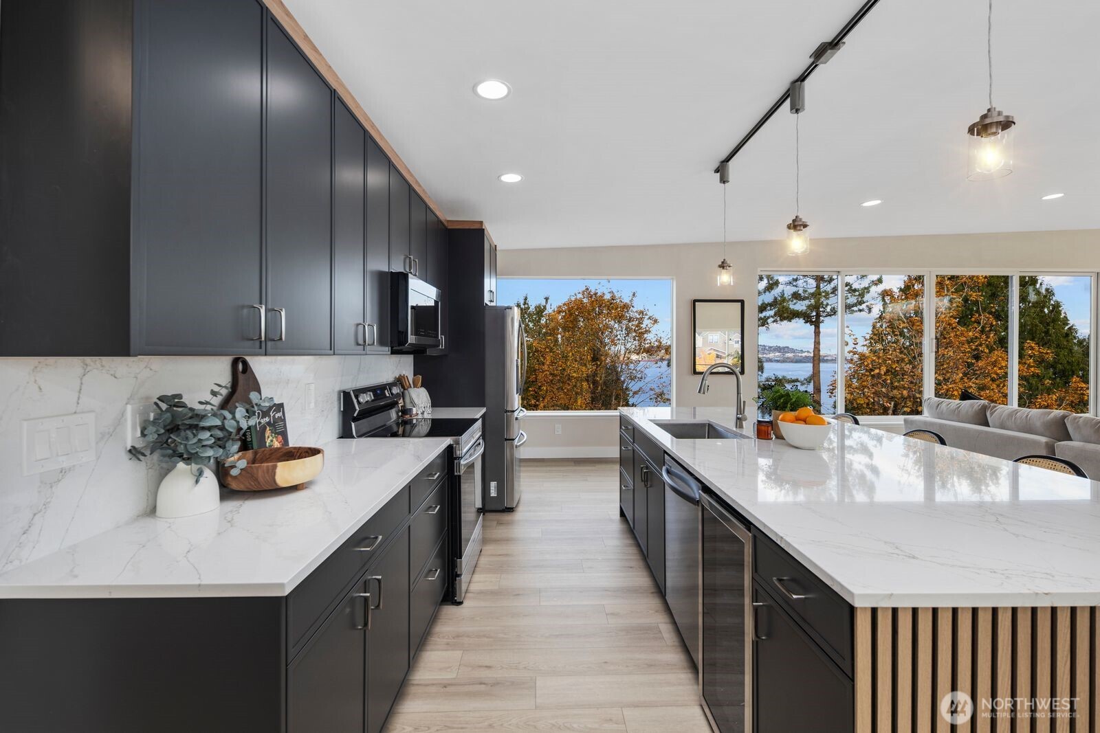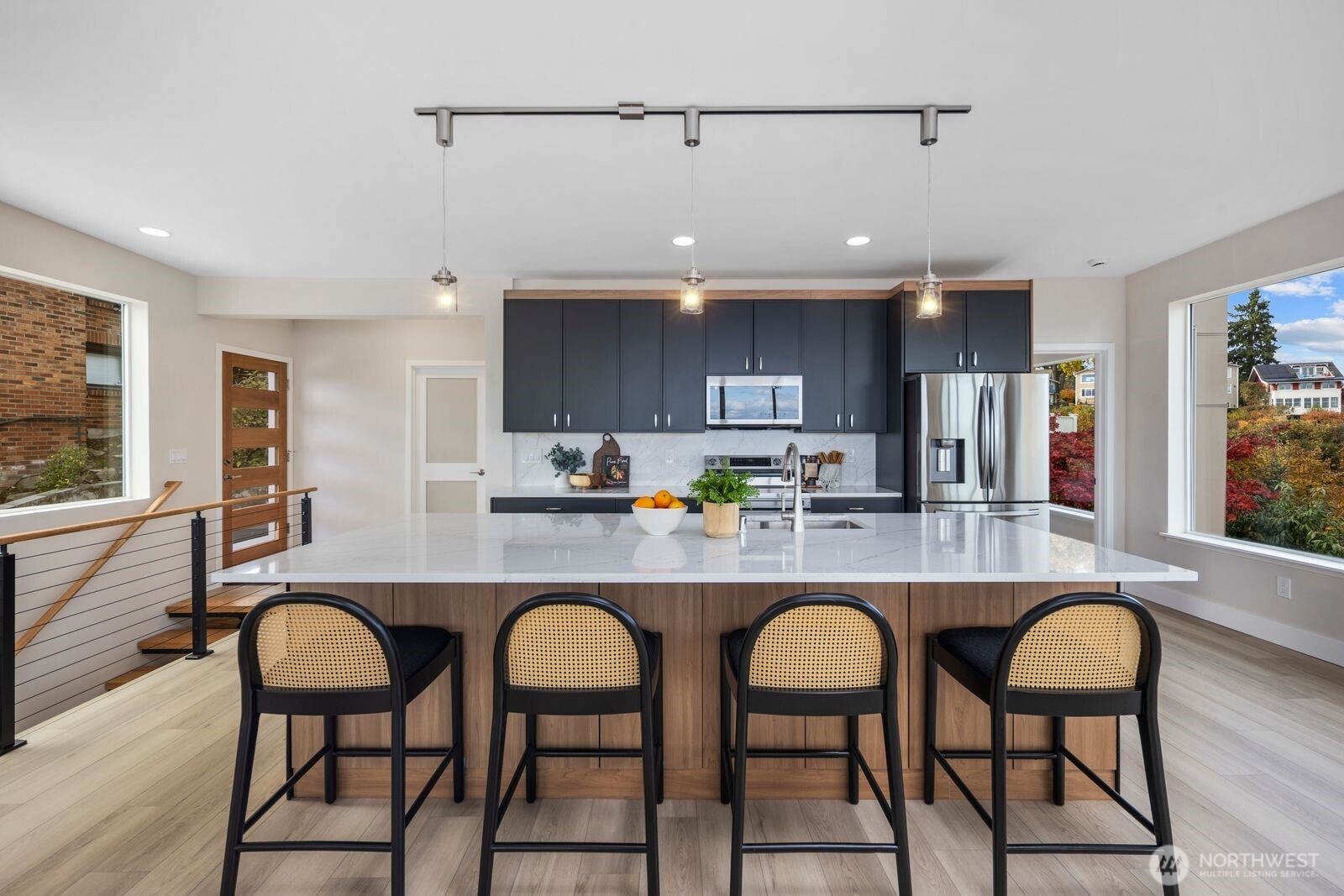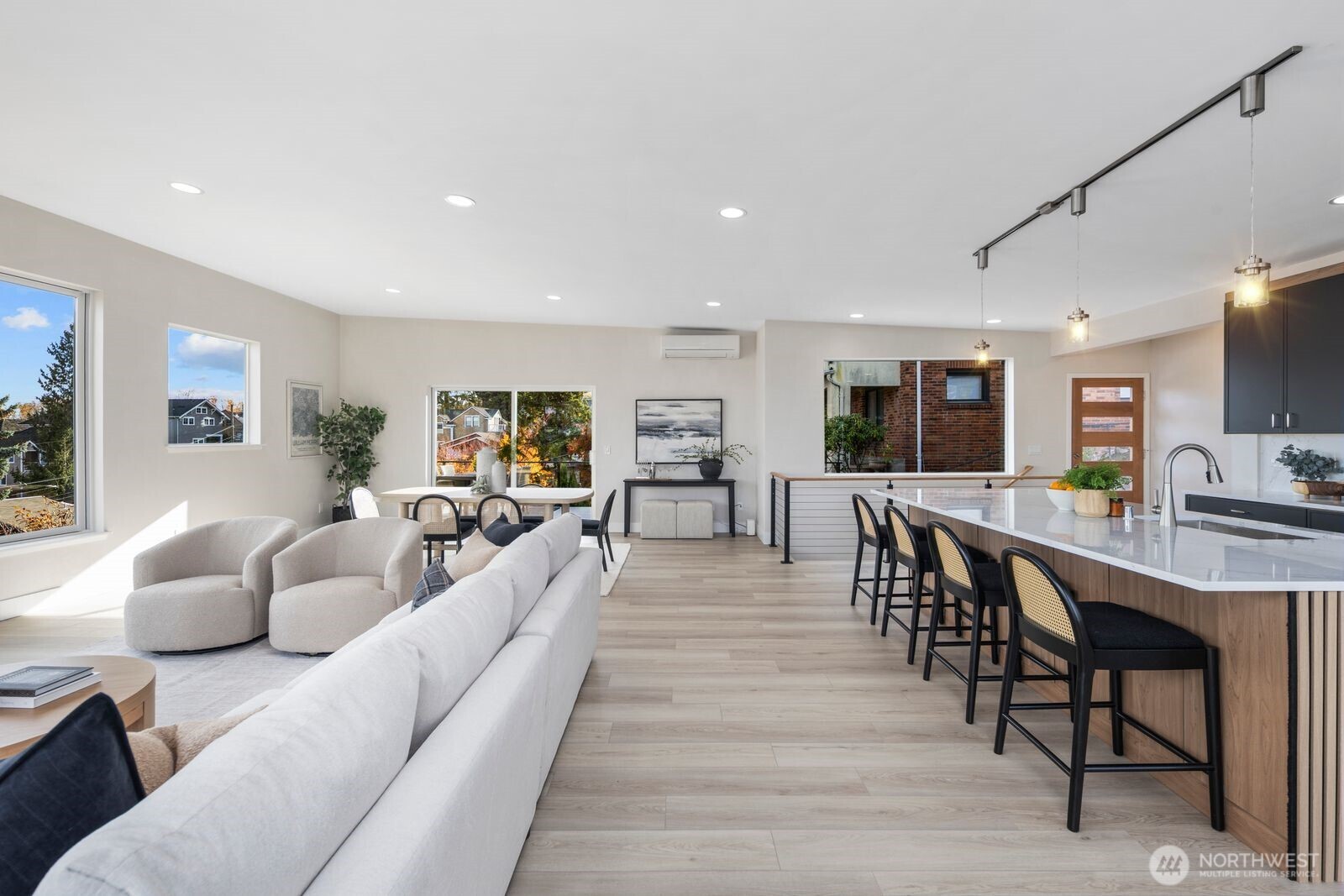 indulge yourself with this rarest of finds--a true hidden gem above Alki unlike anything Seattle has seen. This bespoke North Admiral new construction showpiece captures the essence of modern artistry & precision craftsmanship, framing panoramic skyline & Bay vistas through sweeping walls of glass. Every room delivers front-row seat to the city's dynamic horizon. The 4bed 3.5bath main home features an open-concept great room that blurs the line between grand entertaining & tranquil retreat, while a permitted 1bed 1bath ADU with separate entrance offers unmatched versatility or income potential whether renting it out long- or short-term i.e. Airbnb. Further unlock future value w/ DADU built on a generous lot. Best price/sqft value for a brand new view home boosting over 3,600sqft of wow factor! Solar panels, Tesla inverter, premium finishes & high-efficiency home systems showcase innovation at its finest. Just minutes to water taxi, cafes, beaches & West Seattle Bridge--this is luxury, redefined.